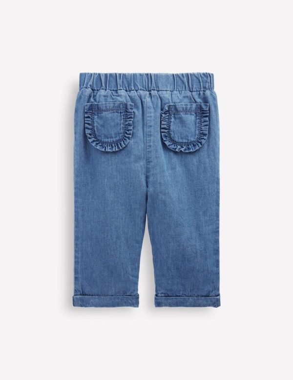 Boden Bottoms | Baby Cosy Lined Pants-Blue Chambray