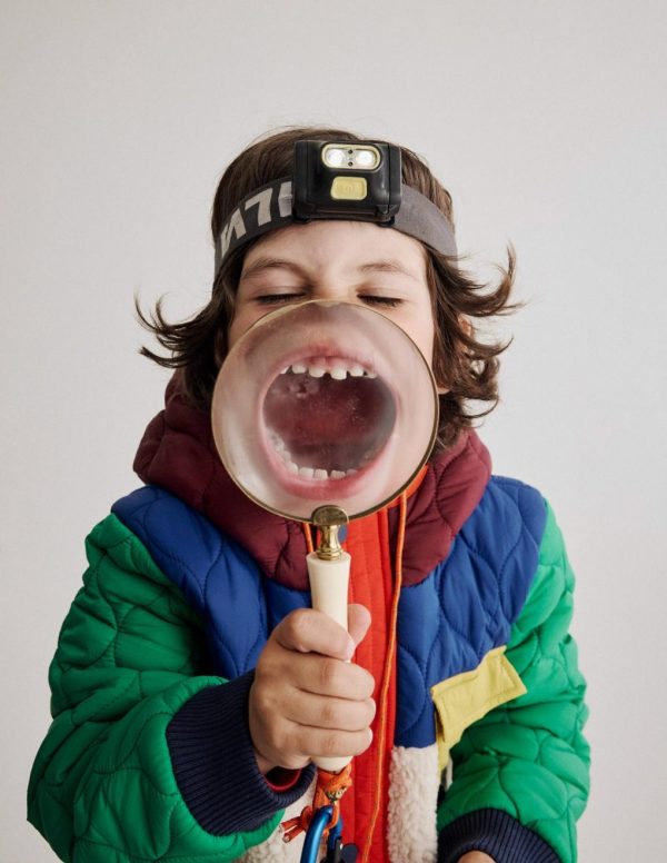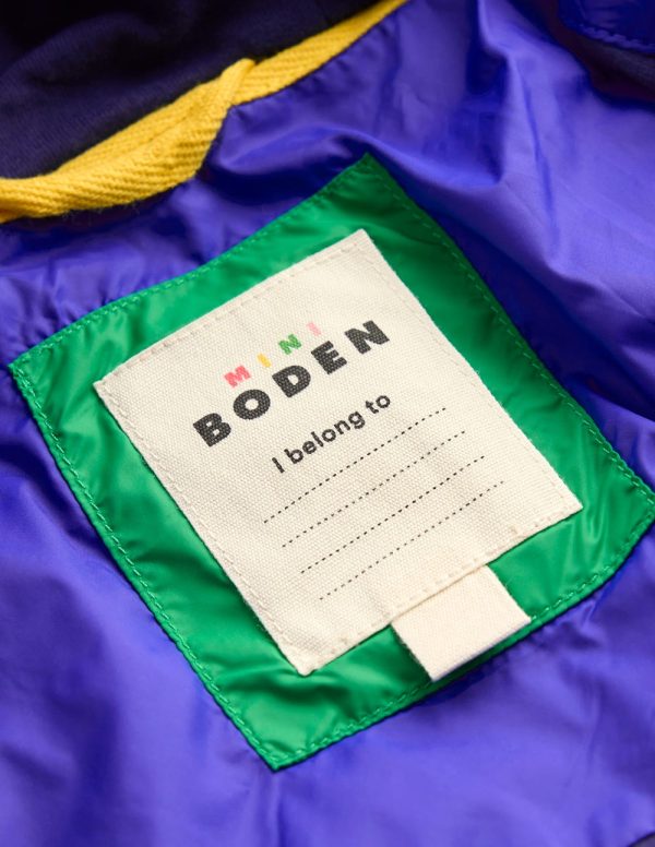 The borg panels make this colourful jacket so soft Minis will transform into huggable (and easy to spot) everyday explorers. The elasticated hood, quilting and two fleece-lined pockets will keep them toasty.– Zip fastening at front