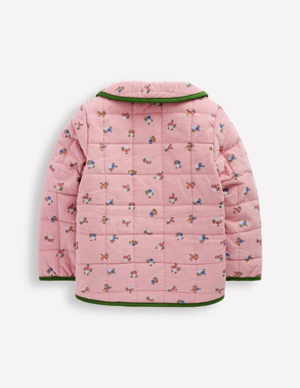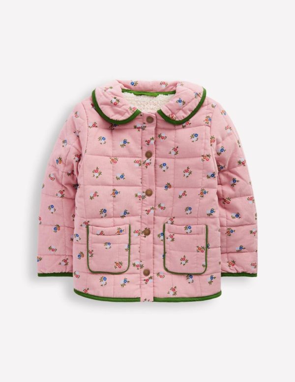 With the cord quilting and piped Peter Pan collar, this pretty jacket is the epitome of cosy sweetness. The borg fleece lining will feel like a hug every time Minis put it on.– Popper fastening