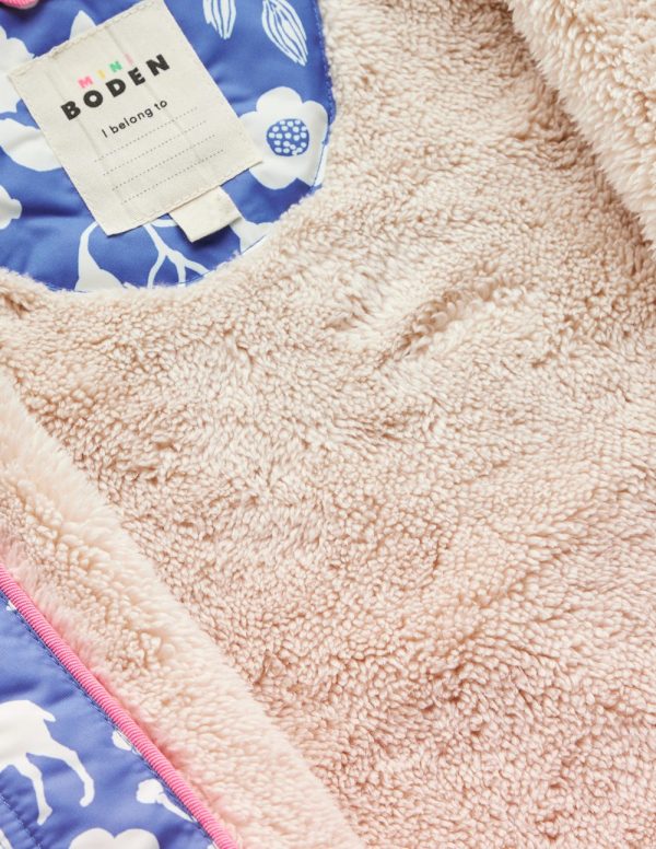 Staying dry is fun wearing this clever anorak. We’ve pulled out all our best tricks to keep the rain out while the faux sherpa lining will keep Minis snug as a bug. Choose from a wide variety of exciting prints.– BIONIC-FINISH®ECO – we use an environmentally friendly water repellent coating, free from fluorocarbons and other hazardous chemicals offering optimum performance. Registered Trademark of RUDOLF, Germany