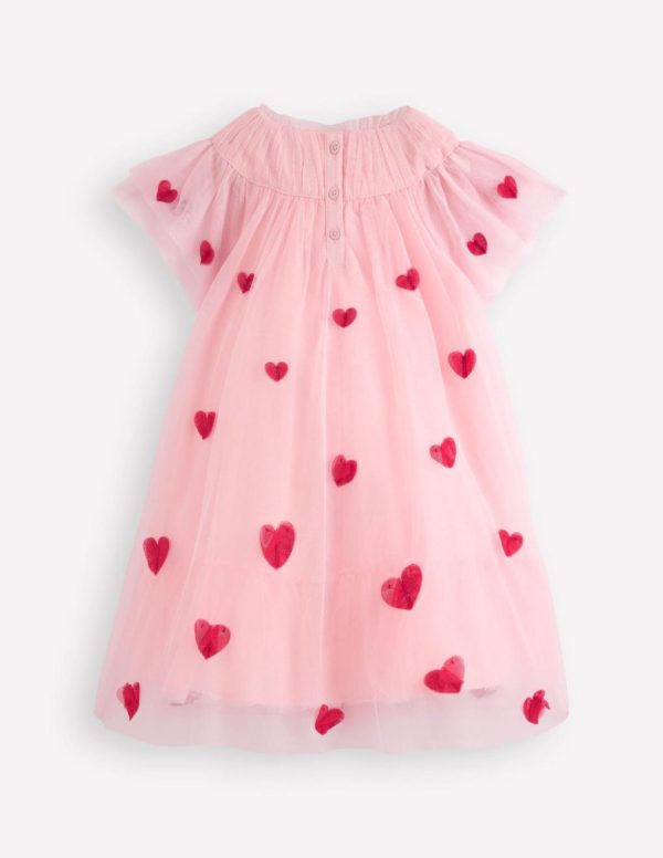 An adorable dress perfect on party-days to spin around in or cosy afternoons reading a story. Minis will love the flutter sleeves, frilly neck and layers of bouncy tulle.– Designed to fall above the knee
