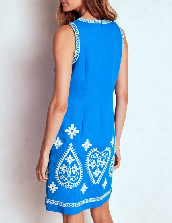 Beautiful embroidery, a flattering shape that shows off your holiday glow and it’s lined. Need we say more? Oh this shift dress is crafted from a linen and cotton blend, so expect a few natural creases.– Model is 5’10 wearing a size 2R