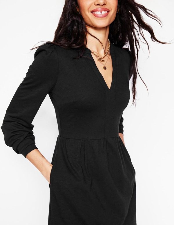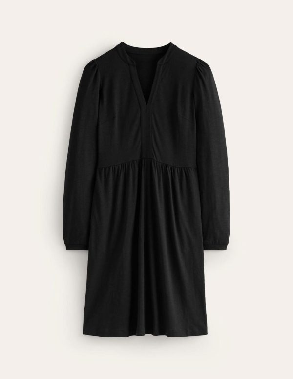 The Naomi relaxed jersey dress is a year-round wardrobe staple thanks to its long sleeves, high notch neck and short length. Plus, its got pockets (of course).– 50% cotton 50% TENCEL ™ Modal