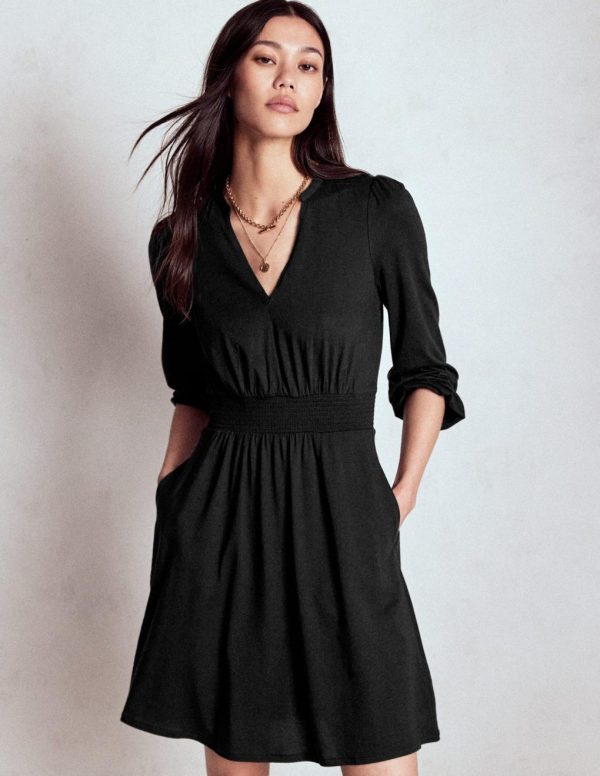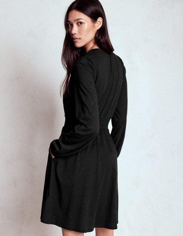 The crease-free jersey fabric makes this dress perfect to pack or wear on a plane. Snap up bright hues for weekend breaks jaunts and darker prints for autumn work meetings.– Model is 5’9 wearing a size 2R