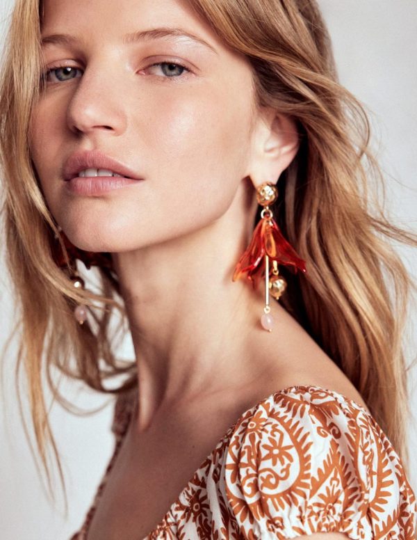 What better way to bloom this season than with our statement drop flower earrings. Crafted from resin and textured vintage gold-toned metal they add serious petal power to your day.– Model is 5’7 wearing a size O/S
