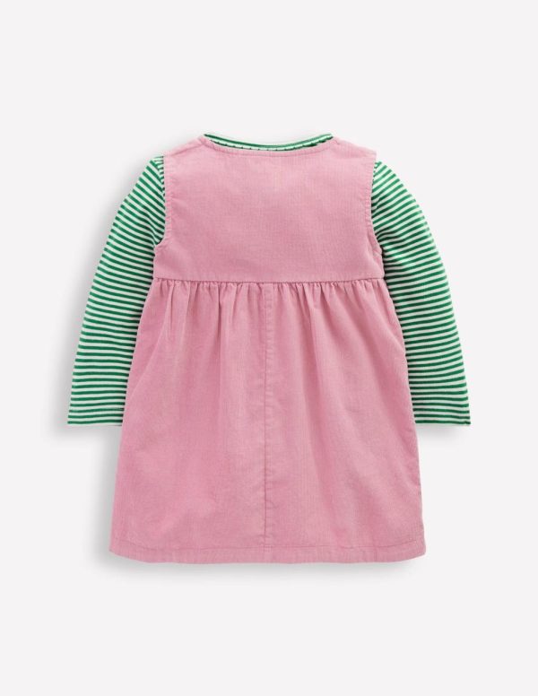 A set to make getting dressed much easier. The cosy combo of cotton and cord fabric, plus the swing shape dress make play easier too. Minis will love the novelty patch pockets.– Appliqué logo