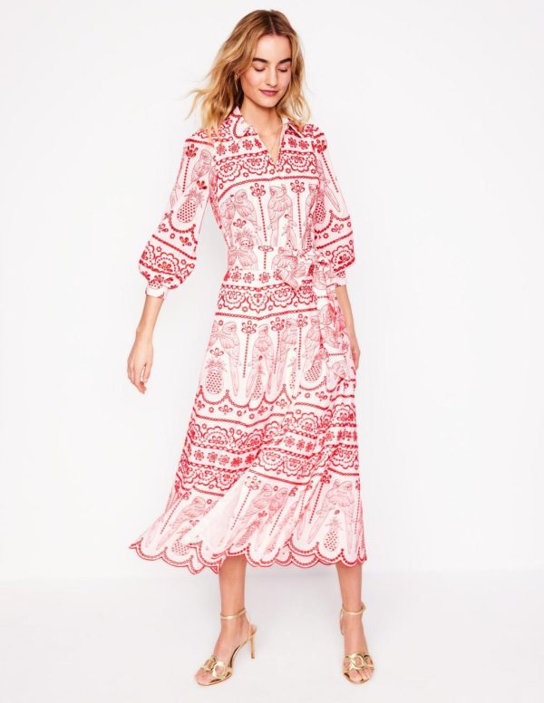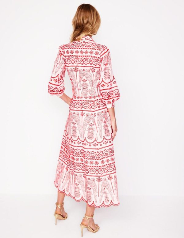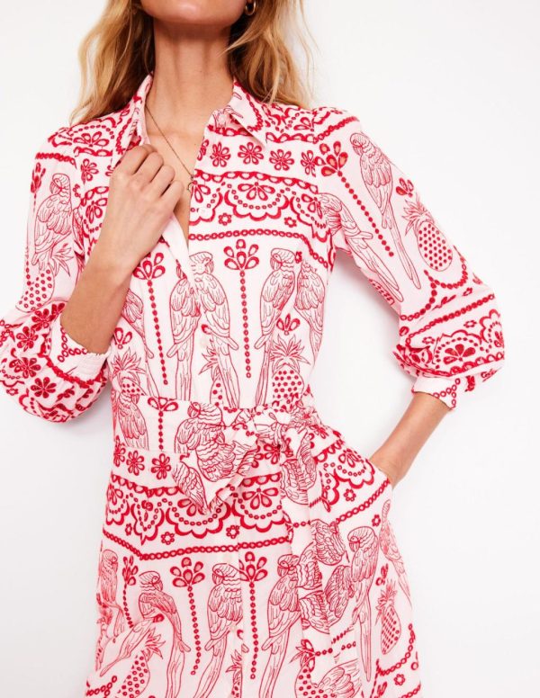 Boden Shirt | Women Clara Broderie Shirt Dress-Poppy Red, Parrot Broderie