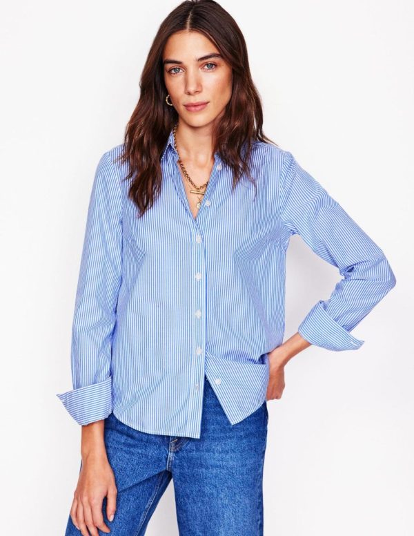 Crisp cotton keeps the straight-fitting shape of our Sienna shirt. It has a curved hem at the back for easy layering.– Model is 5’9 wearing a size 2