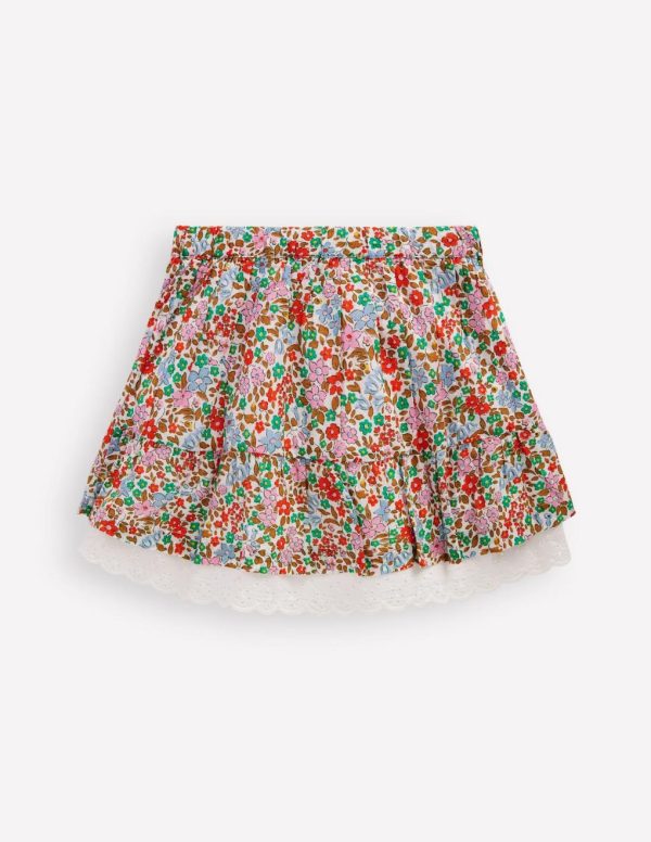How could Minis ever misbehave in this adorable blouse? They’ll love the comfy front smocking, frilly collar and puff sleeves. The hotchpotch floral prints add extra butter-wouldn’t-melt energy.|2-3y|3-4y|4-5y|5-6y|6-7y|7-8y|8-9y|9-10y|10-11y|11-12y|12-13y|13-14y|Hotchpotch Floral|We like to make getting dressed easy. Hey presto, this lightweight cotton skirt with broderie trim along the hem pulls on (and off) in a speedy way. Let play time commence.– Above knee length