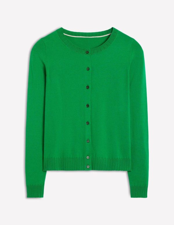 Spun from soft cotton, an intricate knit trim at the hemline, neckline and cuffs gives our Emilia cardigan a delicate finish.– Model is 5’10 wearing a size S