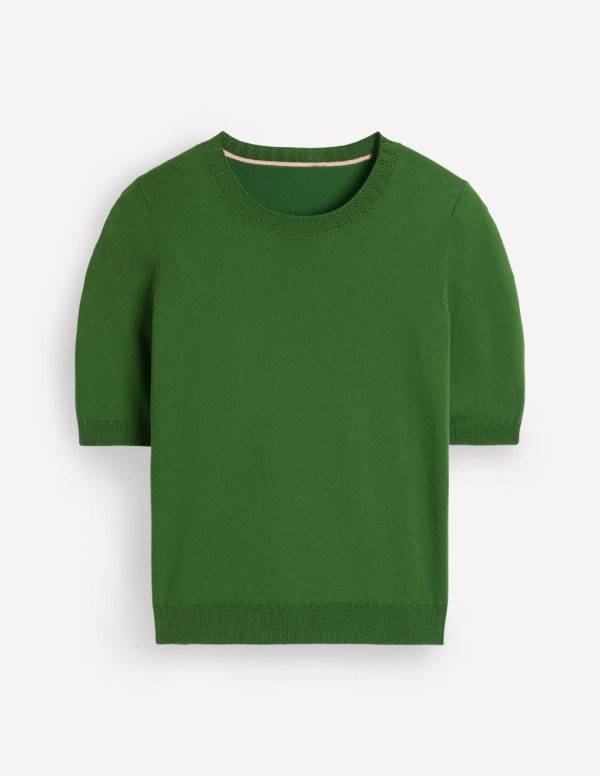Finely woven from soft cotton, our Emilia crew-neck T-shirt has the feel of a knit in the style of a tee. Pair with wide-leg trousers or jeans. Some may say it’s the perfect summer knit.– GRN: main 80% cotton 17% polyamide 3% elastane