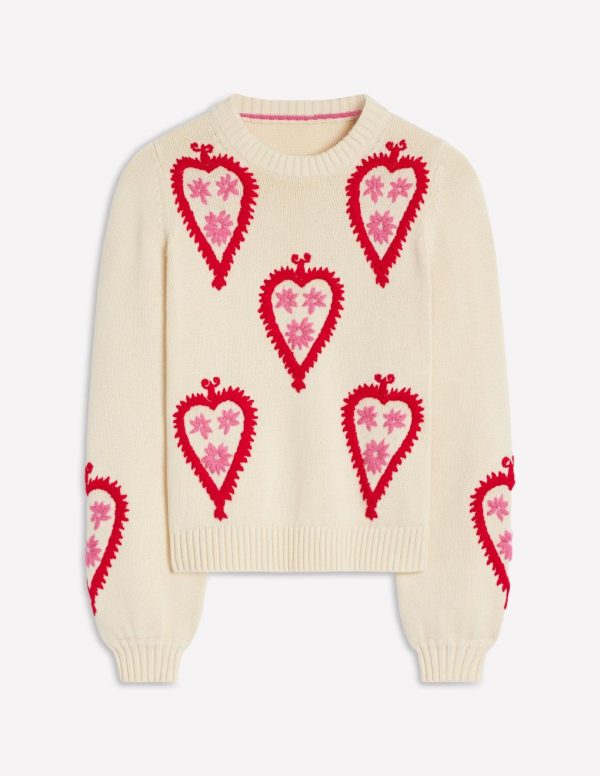 Our heart doodles leapt off the page and onto this cotton knit. Crafted in a relaxed fit with full sleeves and a classic crew neck, you’ll love this embroidered jumper all year round.– Model is 5’9 wearing a size S