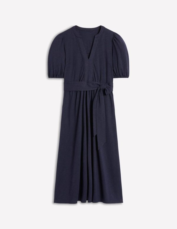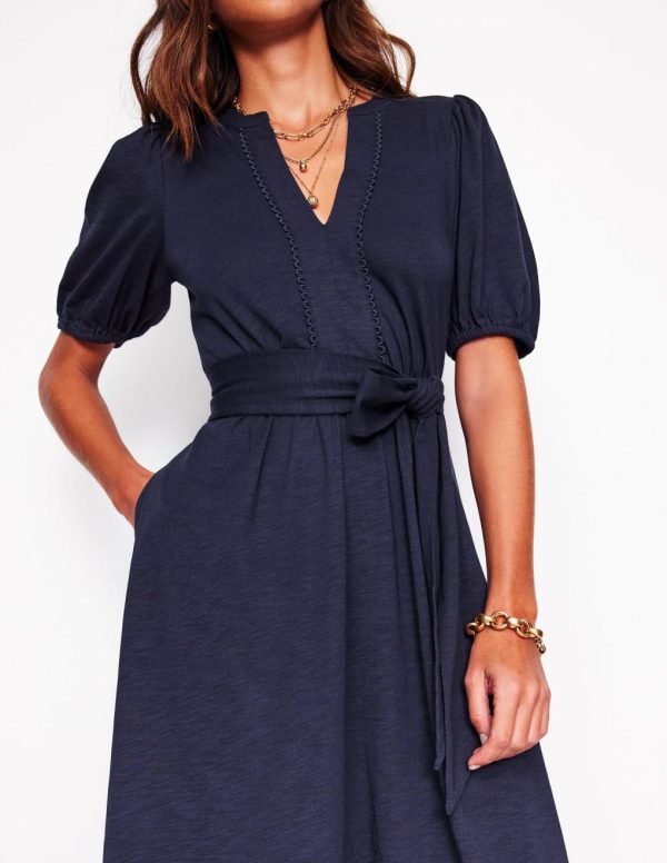 The best thing about this dress? Aside from the striking puff sleeves and delicate scallop trim detail, the incredibly soft jersey cotton blend fabric is easy to wear all summer.– 50% cotton 50% TENCEL ™ Modal
