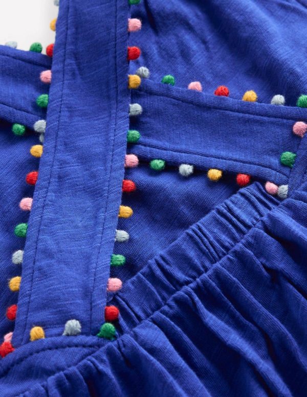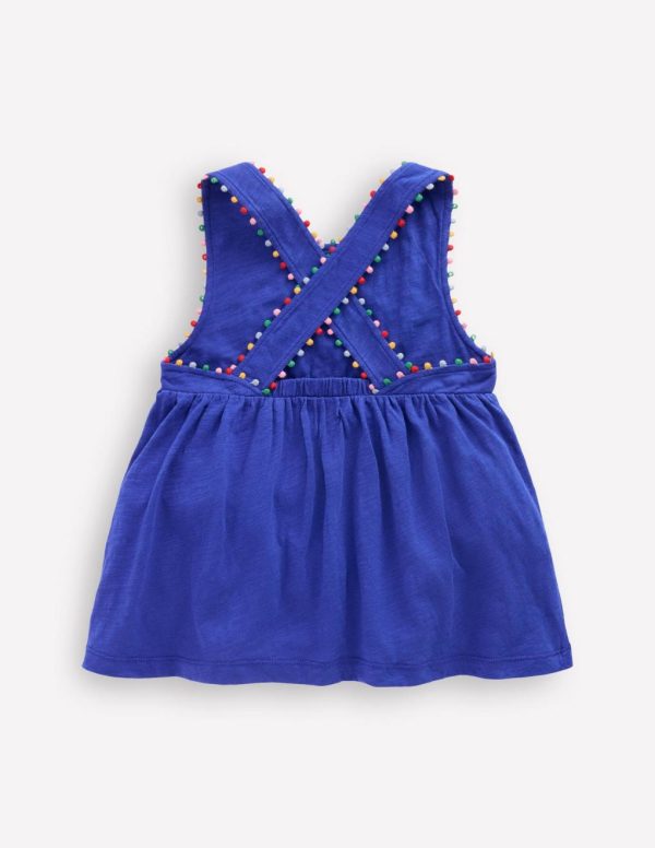 We’ve taken the classic summer vest and made it extra-special. There’s a surprise at the back – a stretchy panel and wide cross over straps with pom pom trim for a cute finish.– Main 100% cotton