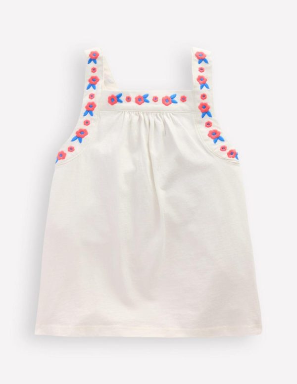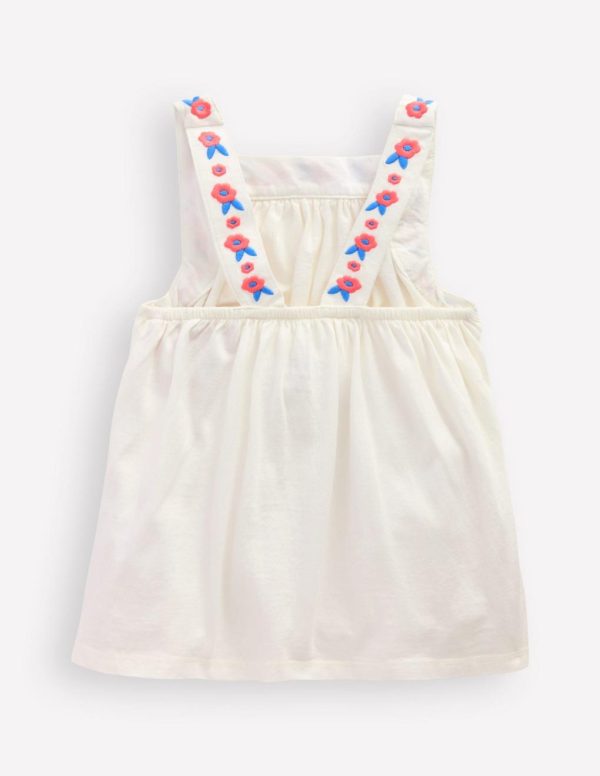We’ve worked our embroidery magic into the front and back straps of this adorable 100% cotton top. It sits on delicate skin as light as a cloud on summer days.– Main 100% cotton
