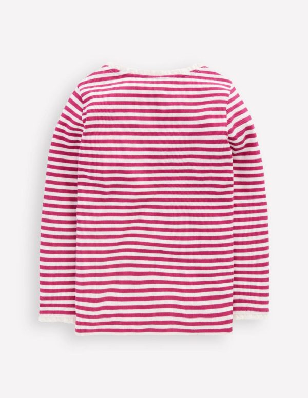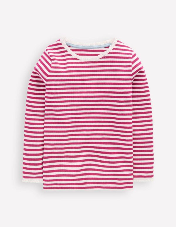This sweet frilly neck long-sleeve top is crafted from soft ribbed-cotton for a snuggly fit as a base layer or worn alone. Choose from a flurry of bright colours and striped prints.– 96% cotton 4% elastane
