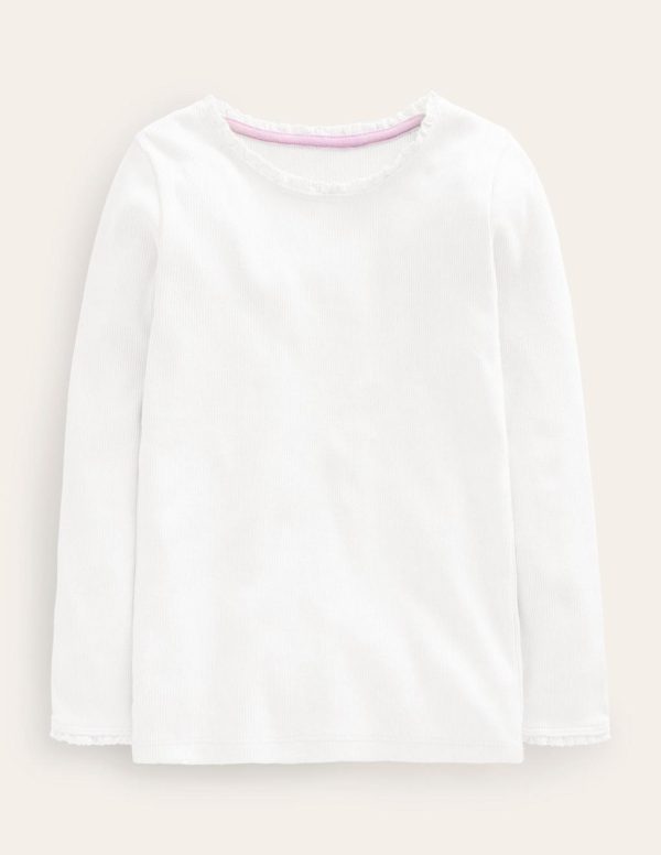 Boden Tops & T-Shirts | Girls Ribbed Long Sleeve T-shirt-White