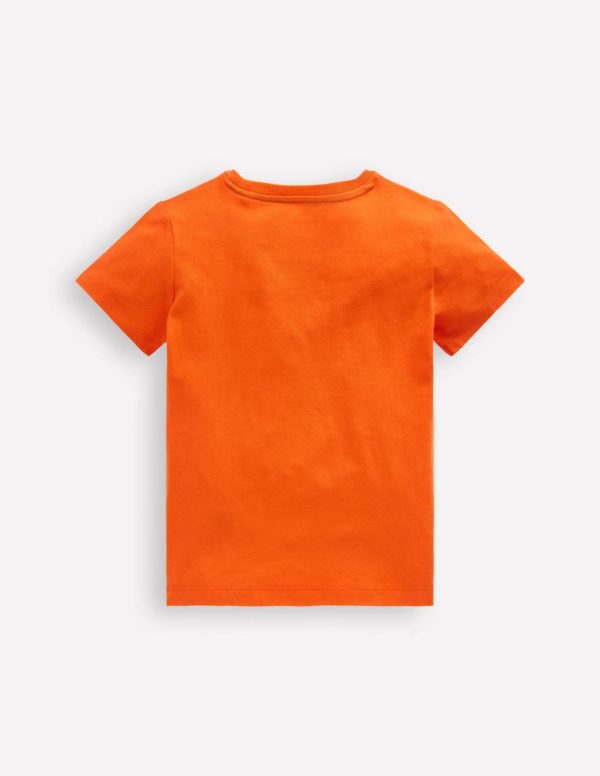 Short sleeves and breathable cotton jersey make this T-shirt a trusty basic. The colourful motifs created with tactile bouclé and embroidery will transport Minis to sunny days.– Base 100% cotton