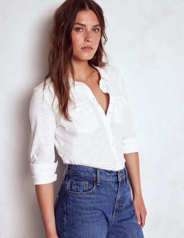 Woven from soft jersey cotton, our Amy shirt is the smart off-duty option every wardrobe needs.– Model is 5’9 wearing a size 2