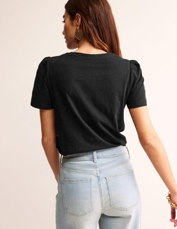 An everyday tee with gently puffed sleeves – aka the easiest way ever to elevate your everyday outfits. Wear it tucked in for a slightly smarter look.– Model is 5’9 wearing a size XS