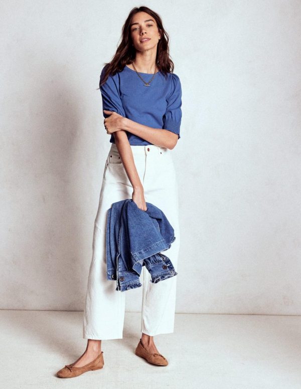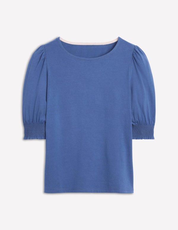 Update your usual jeans and a tee combo with our latest take on the short-sleeve top – the puff sleeves with smocked cuffs make it ideal for work or play.– Model is 5’9 wearing a size 2