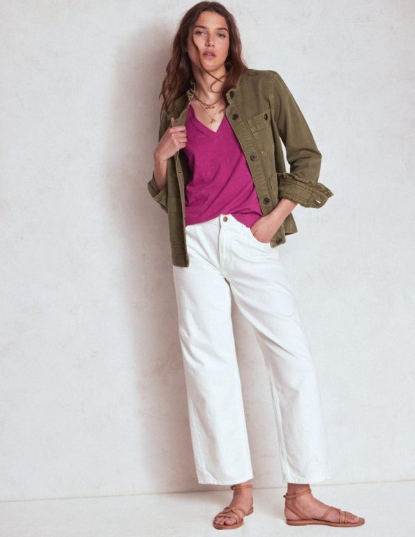 Offering a little more than your standard T-shirt, this soft cotton creation has pretty angel sleeves and a V-neck. And it comes in plenty of colours to choose from…– Model is 5’9 wearing a size XS