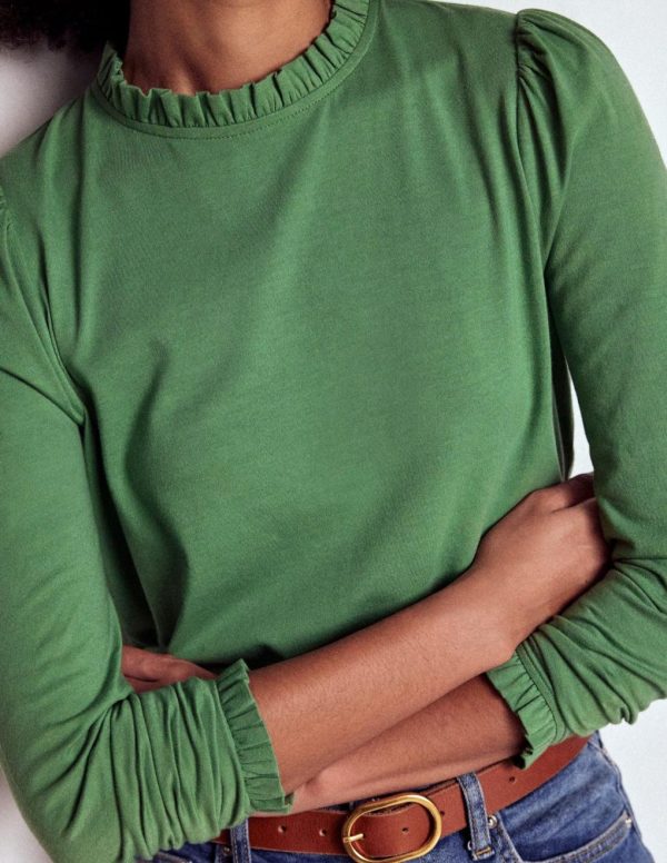 For when you’d rather be in pyjamas, but can’t really skip that presentation. Our supersoft frill detail top is a joyful kind of a compromise. It works marvelously alone or as a base layer.– Model is 5’9 wearing a size 2
