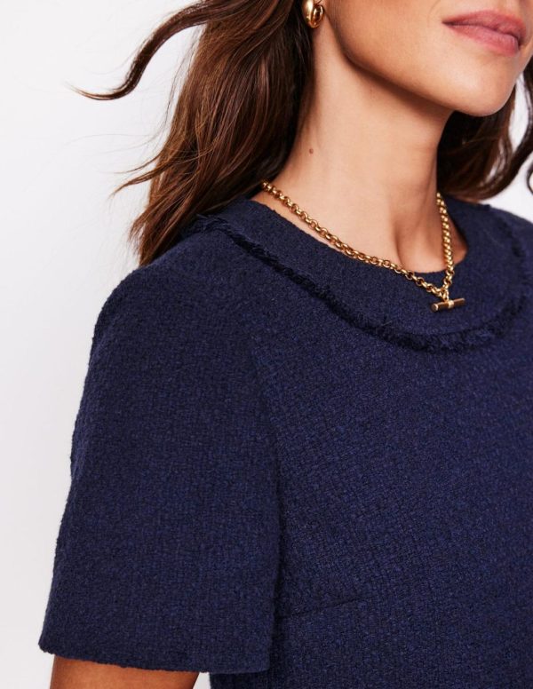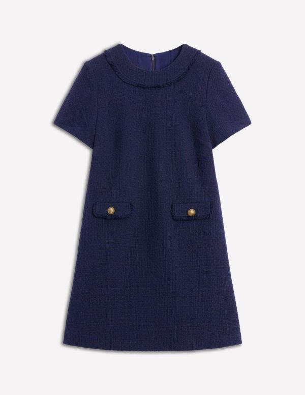 Warm weather brings opportunities to wear a dress without lots of layers. The Evita is a cotton blend style to show off. The eye-catching gold buttons and raw trim make it extra special.– Model is 5’9 wearing a size S